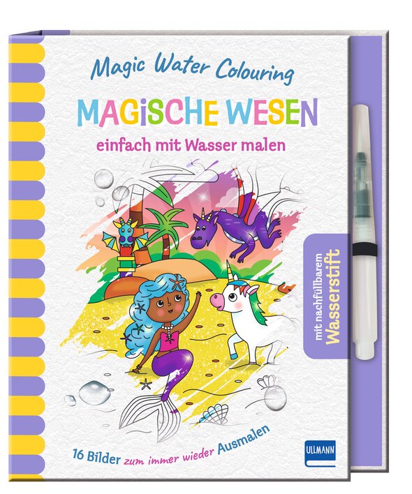 - Ausstattung Hardcover mit Wire-O-Bindung, mit 16 beschichteten Seiten, die sich beim Kontakt mit Wasser einfärben, mit Wasser befüllbarer Stift